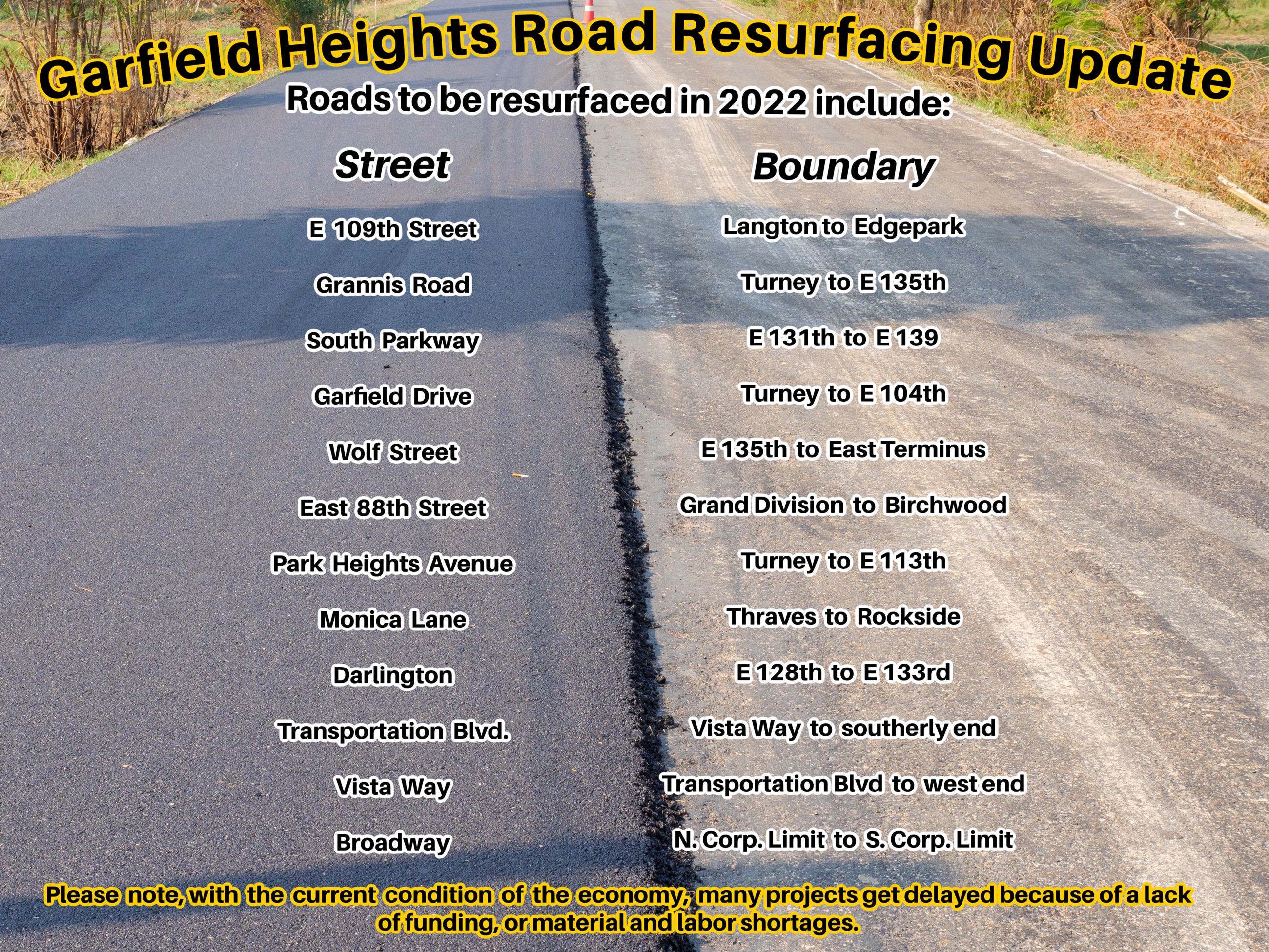 The methodology that the Team has developed maximizes the amount of total dollars, local and outside funds, which can be committed to repairing Garfield Heights city streets. The total cost to repair/resurface roadways that are currently in unacceptable condition continues to exceed our available funds. This funding gap is likely to continue for several more years as we work to catch up with deferred maintenance. There was a significant gap in the roadway repair program in previous years as the city climbed out of fiscal emergency. It will take some time to restore all roadways to an acceptable condition, but we will continue to move forward.